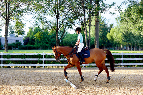 在開始跳整個(gè)場(chǎng)地障礙路線之前,騎手還需要做“體操障礙訓(xùn)練”。這是一長(zhǎng)串的障礙組合練習(xí),騎手策馬首先以快步通過(guò)第一個(gè)地桿,然后接著以跑步通過(guò)3至6道連成直線的障礙,每道障礙間距1或2個(gè)跑步步幅,障礙高度一般在50cm以下。這項(xiàng)練習(xí)有助于提升馬腿部的靈活性、跳越障礙的反應(yīng)靈敏度,鍛煉?cǎi)R背部的肌肉以及培養(yǎng)騎手的節(jié)奏感。如前所述,當(dāng)你想成為一名場(chǎng)地障礙騎手時(shí),請(qǐng)放下急躁的心情,慢慢從容地開始訓(xùn)練,每次一步一個(gè)腳印地漸漸取得進(jìn)步。當(dāng)基本功練扎實(shí)之后,再高的障礙都將不在話下。(馬術(shù)雜志,文/Philipp Baumgart 編譯/趙穎 圖/依米影像)