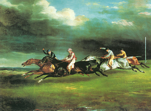 18世紀的英國賽馬非常興盛,乃至當時的英國王室都樂此不疲。當時在英國逗留的席里柯對觀看賽馬也產(chǎn)生濃厚的興趣,并且還親自加入了騎馬俱樂部,賽馬自然也就成為畫家最熱衷的表現(xiàn)題材。