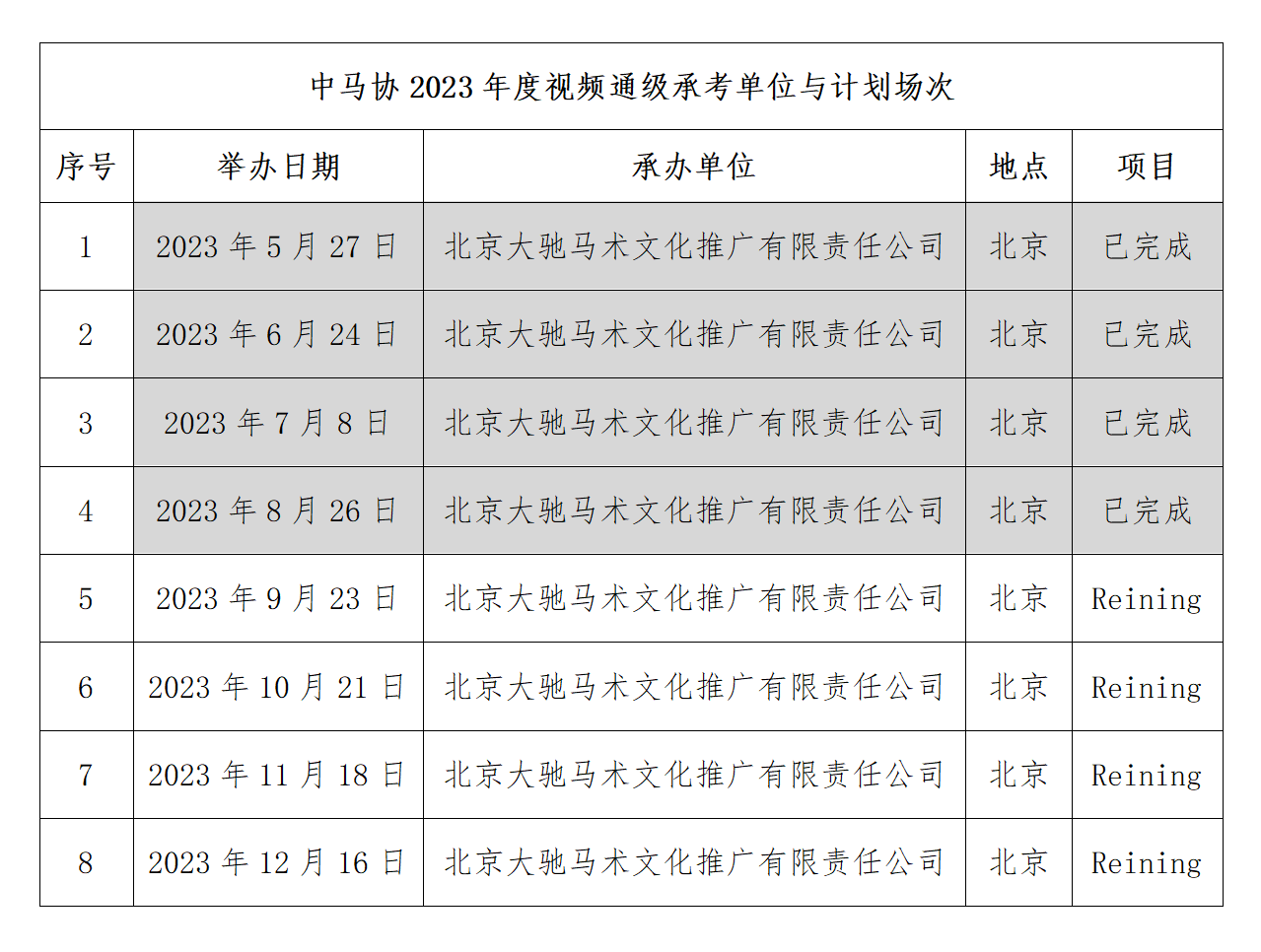 為進一步推進Reining項目通級考核工作,現(xiàn)將2023年度Reining項目視頻通級承考單位及場次公布如下:
