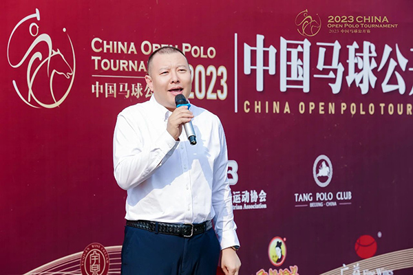 在2023年中國馬球公開賽歡迎晚宴上做開場致辭