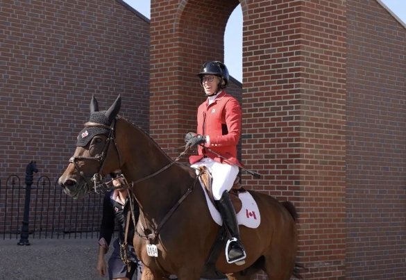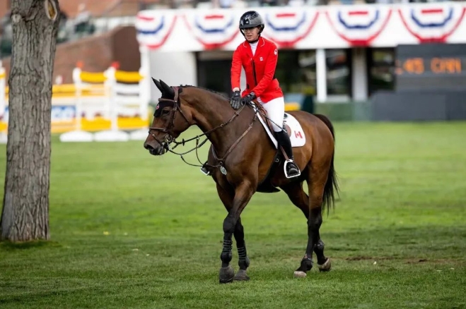 2023年CSIO云杉草地大師賽勞力士呈獻(xiàn)CPKC國(guó)際大獎(jiǎng)賽,伊恩·米勒的女兒艾米·米勒進(jìn)場(chǎng)比賽前