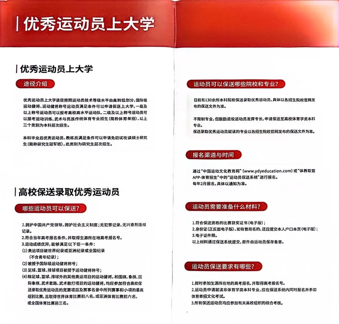 優(yōu)秀運動員上大學(xué)宣傳折頁: