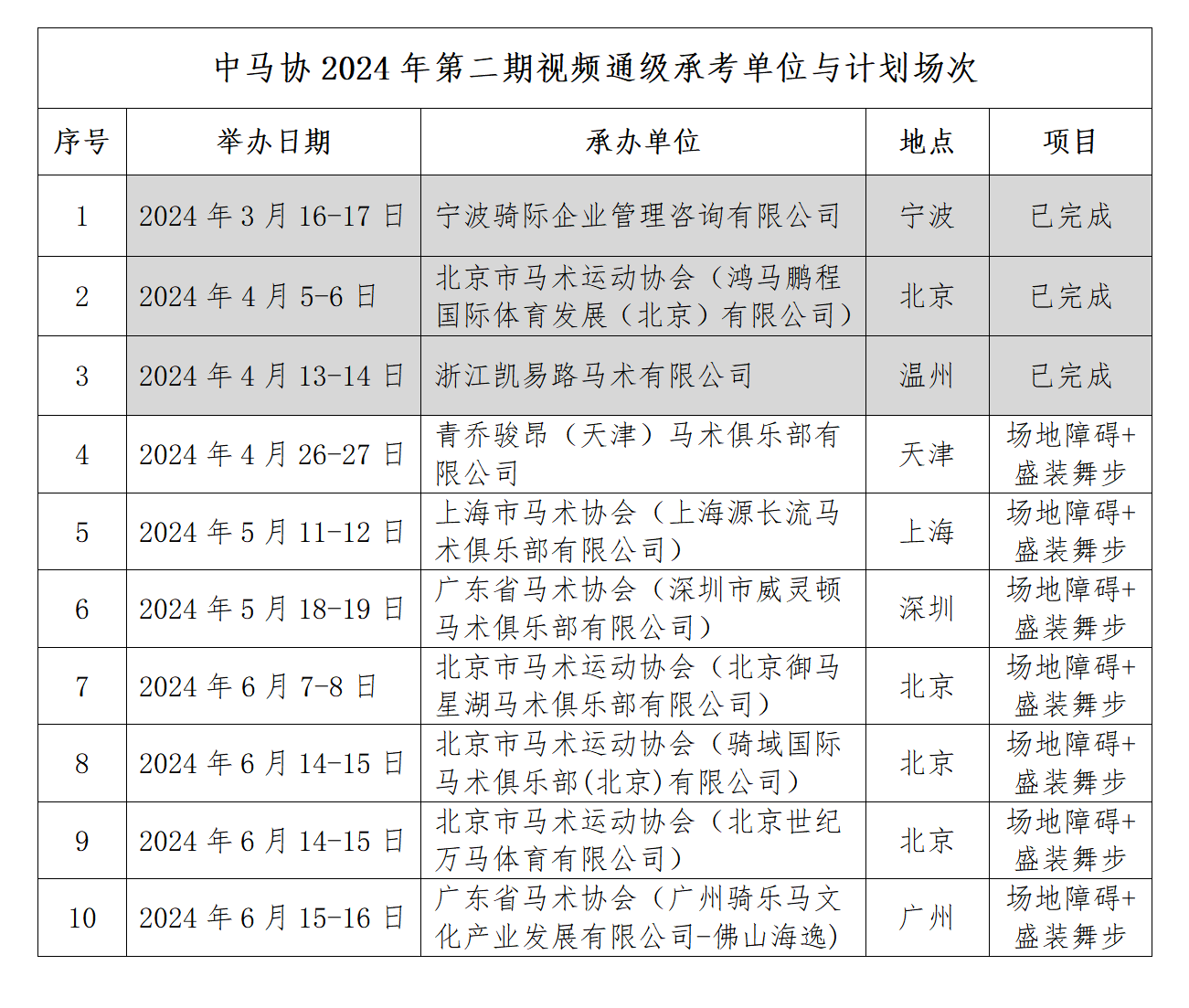 中馬協(xié)關(guān)于公布第二期視頻通級(jí)考核計(jì)劃的通知