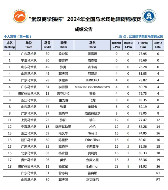 “武漢商學(xué)院杯”2024年全國馬術(shù)場地障礙錦標(biāo)賽個人賽順利完賽