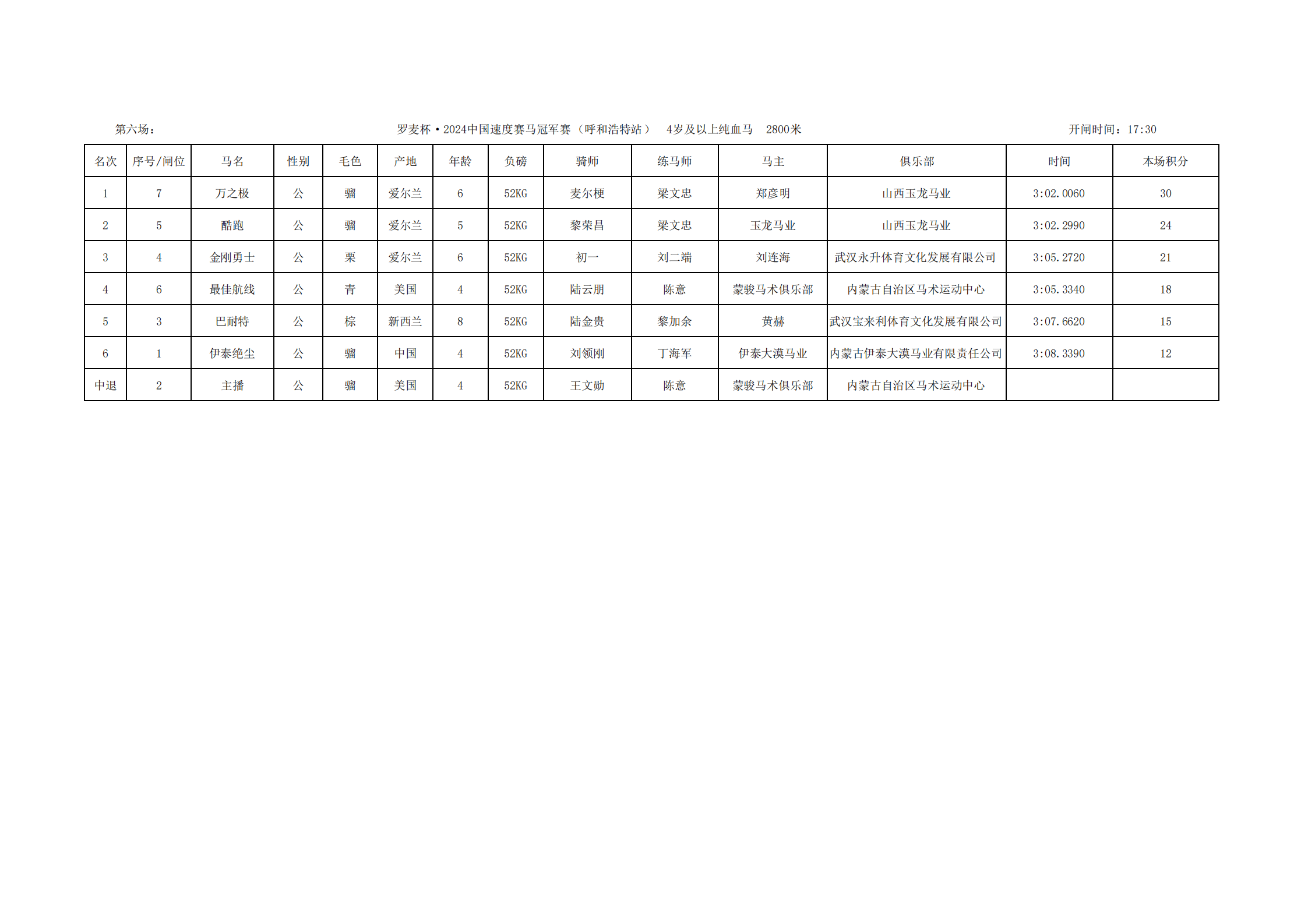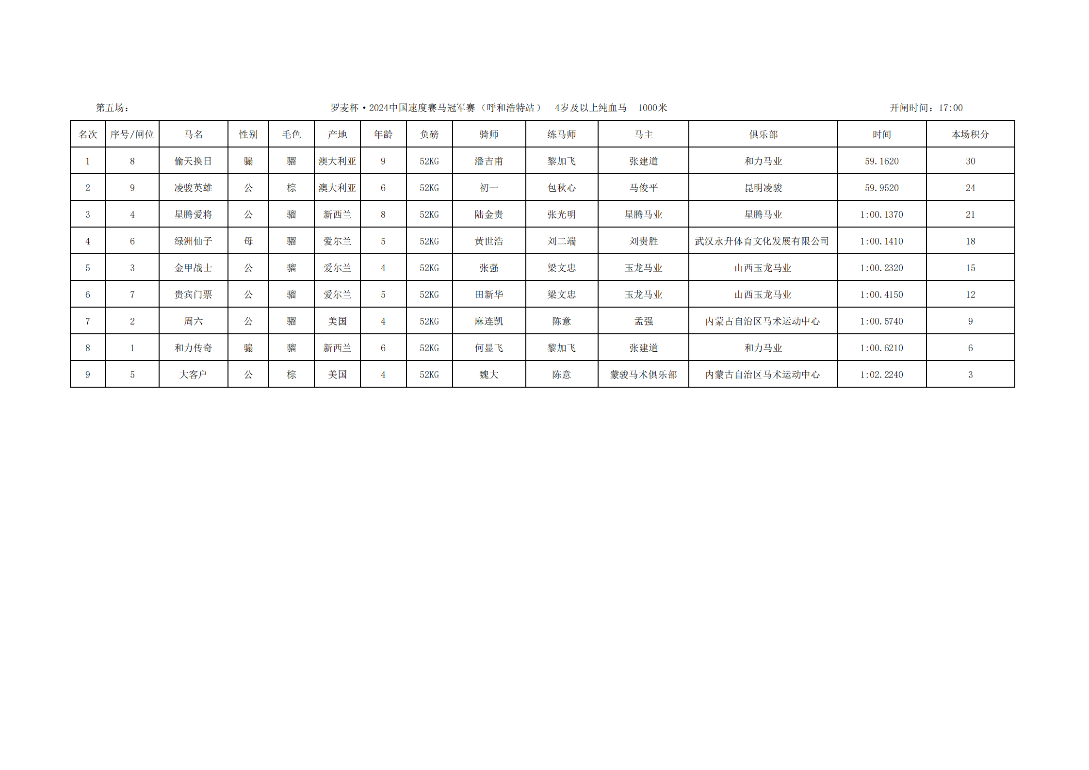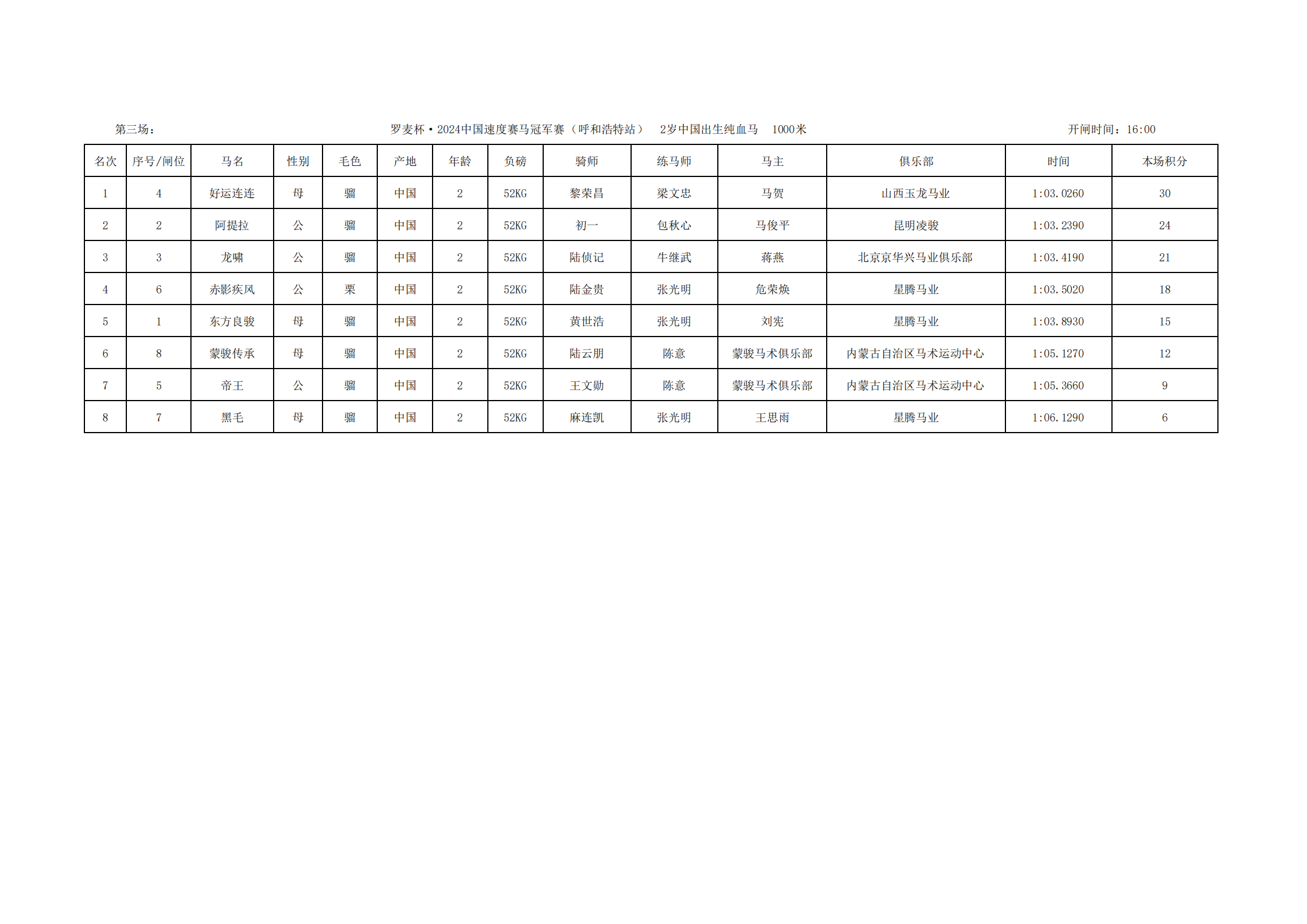 羅麥杯·2024年中國(guó)速度賽馬冠軍賽(呼和浩特站)成績(jī)表