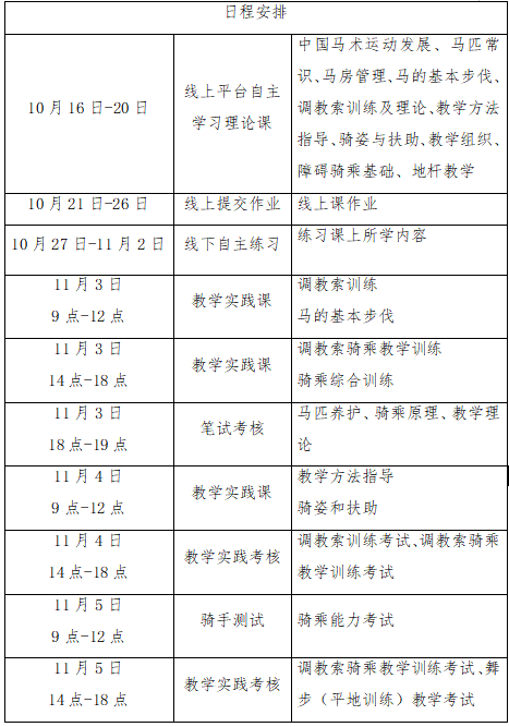 (三)線下輔導(dǎo)和實(shí)踐考核:2025年11月3日-5日,在一朵青云馬術(shù)運(yùn)動(dòng)中心進(jìn)行線下集中輔導(dǎo)與實(shí)踐考核。