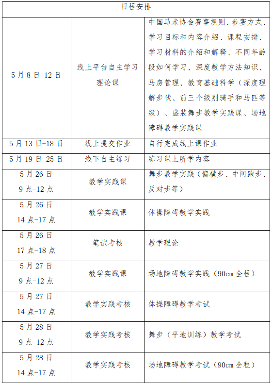 (三)線下輔導(dǎo)和實踐考核:2026年5月26日-28日,在山東愛馬人馬術(shù)俱樂部進行線下集中輔導(dǎo)與實踐。