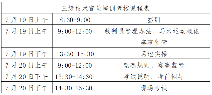 根據(jù)馬術(shù)專業(yè)人才培養(yǎng)計(jì)劃,我協(xié)會將于2021年7月19日-20日在廈門市思明區(qū)觀音山夢幻海岸沙雕文化體育公園舉辦三級技術(shù)官員培訓(xùn)考核活動,合格者授予中國馬術(shù)協(xié)會相應(yīng)等級技術(shù)官員證?,F(xiàn)就本次培訓(xùn)考核相關(guān)事宜通知如下: