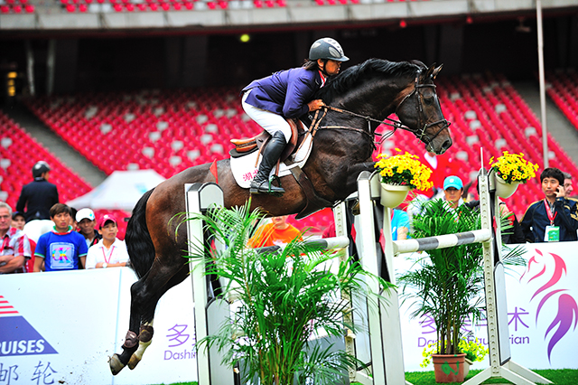 在接近障礙時,騎手控制身體穩(wěn)定,全程保持平衡直到障礙前。