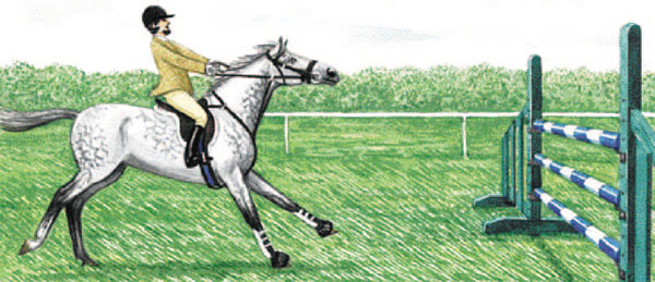 馬匹沖障礙有不同的原因,可能是它的經(jīng)驗(yàn)少或它精力過盛,如果是這樣,跳幾道后它很快就會(huì)安靜下來,另外有些馬沖障礙是因?yàn)樗鼈兒ε绿系K,所以它們渴望盡快到達(dá)障礙的另一邊并安全落地,它們覺得越快越好。