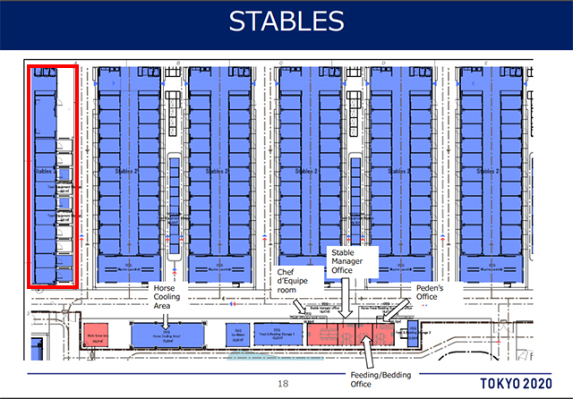 國(guó)家隊(duì)騎手隊(duì)員都是從荷蘭的阿姆斯特丹飛往日本東京,而中國(guó)馬術(shù)國(guó)家隊(duì)的參賽馬匹,都從亞琛出發(fā)運(yùn)往鄰里之隔的比利時(shí)列日機(jī)場(chǎng)(Liege Airport),從列日機(jī)場(chǎng)乘馬匹運(yùn)輸專機(jī)飛往日本東京。據(jù)有關(guān)消息,奧運(yùn)會(huì)馬術(shù)場(chǎng)地的馬廄共有330間,中國(guó)馬術(shù)國(guó)家隊(duì)的馬匹將被安排在A區(qū)域。