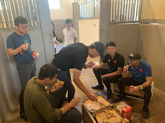 為保證安全,中國(guó)馬術(shù)國(guó)家隊(duì)領(lǐng)隊(duì)及協(xié)會(huì)相關(guān)負(fù)責(zé)人員,從隊(duì)員的起居飲食等各方面積極協(xié)調(diào),費(fèi)了不少心思。因?yàn)橐琅d奮劑,在奧運(yùn)比賽前的飲食上就要特別把好關(guān),再加上防疫情,隊(duì)員活動(dòng)空間受到極大的限制。除去日常訓(xùn)練和工作的勞累,還要自己做飯,保證一日三餐,有時(shí)候不得不在馬廄里吃上一頓簡(jiǎn)餐。目的是在防興奮劑、防疫情方面要做好嚴(yán)格把控,干干凈凈去東京。