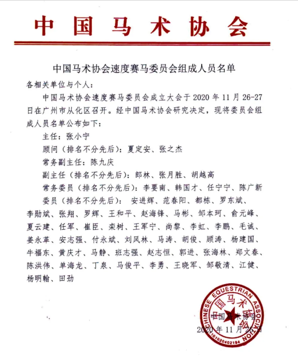 【里程碑】中國(guó)馬術(shù)協(xié)會(huì)速度賽馬委員會(huì)成立