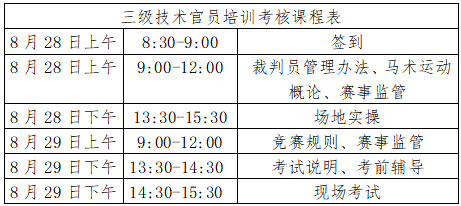 根據(jù)現(xiàn)階段防疫政策及相關(guān)文件精神,原定于2021年5月29日-30日在深圳維多麗亞國際馬術(shù)俱樂部舉辦三級(jí)技術(shù)官員培訓(xùn)考核活動(dòng),現(xiàn)定于在2021年8月28日-29日舉辦,合格者授予中國馬術(shù)協(xié)會(huì)相應(yīng)等級(jí)技術(shù)官員證。本次培訓(xùn)考核相關(guān)事宜通知如下: